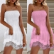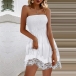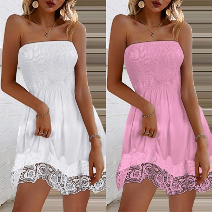 Sexy Solid Color Smocked Strapless Lace Spliced Mini Dress