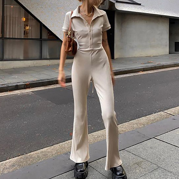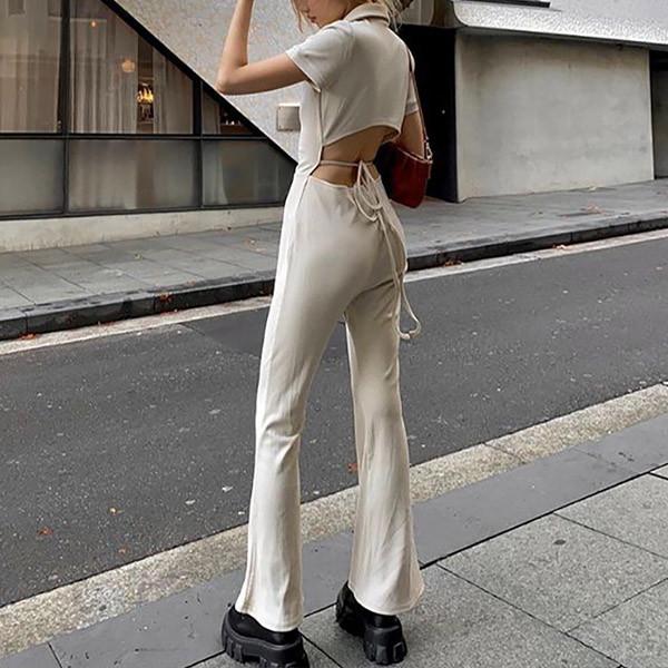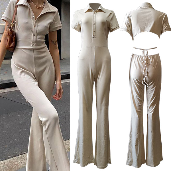 Looking for a jumpsuit that is both sexy and stylish? Look no further than this one! This jumpsuit features a stand collar, front buttoned and back cutout details .The wide-leg silhouette is casual and chic. Is it your style?