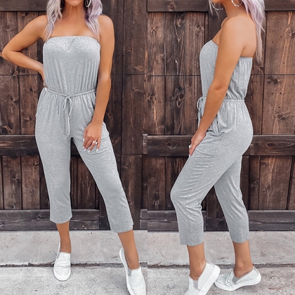 This jumpsuit features the strapless design, elastic waist drawstring, and capri pants make it looks sexy and stylish.