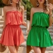 This romper is the perfect choice for those who want to make a bold and sexy statement. The solid color design adds a sleek and sophisticated touch, while the strapless neckline showcases your shoulders and adds a hint of allure. Perfect for this summer!
