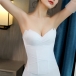 Sexy Solid Color Strapless Ruffle Ruched Wedding Dress Corset Shapewear