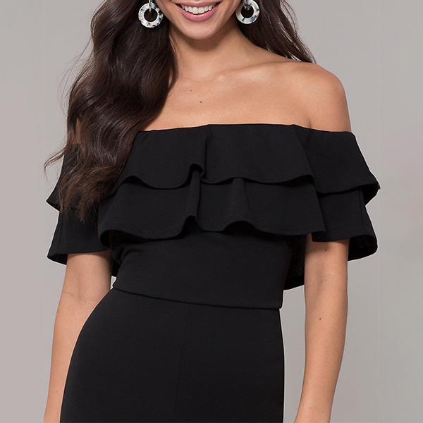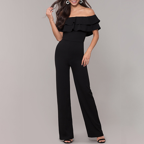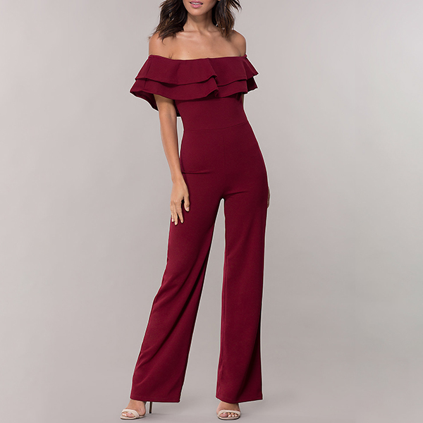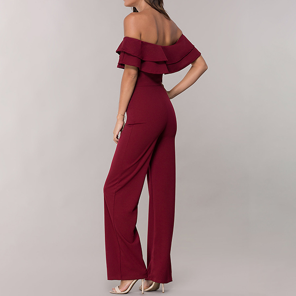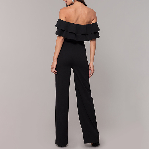 Sexy Solid Color Strapless Ruffled Wide-leg Jumpsuit
