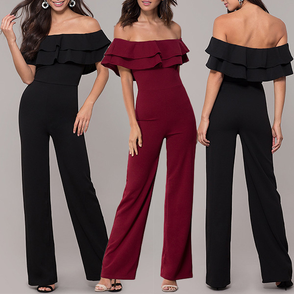 Cette combinaison est parfaite pour toutes sortes d'occasions, qu'il s'agisse d'une soirée entre amis ou d'un événement formel ou d'un mariage. L'encolure sans bretelles de la combinaison met en valeur le décolleté et ajoute une touche de sophistication, tandis que les volants créent une ambiance ludique et flirteuse. La jambe large de la combinaison offre une coupe confortable et aérée, parfaite pour les temps chauds ou les événements en plein air. La combinaison est généralement ajustée à la taille, créant une silhouette flatteuse et accentuant les courbes.