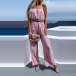 Sexy jumpsuit featuring solid color, strapless, smocked waist design for a perfect fit. Made of soft material, it would bring you comfortable wearing.