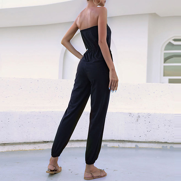 Sexy Solid Color Straplss Eastic Drawstring Jumpsuit
