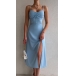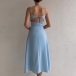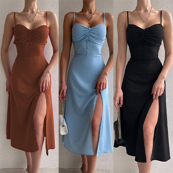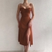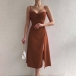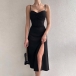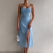 Sexy Solid Color Sweetheart Buttoned Self-tie Backless Slit Slip Dress