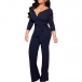 How about this jumpsuit? The plunging neckline and self-tie waist will accentuate your curves, while the wide-leg silhouette will make you feel like a glamourous goddess. The solid color will ensure that all eyes are on you, while the long sleeves will keep you feeling covered and comfortable. Whether you're wearing it for a night out or a special event, this jumpsuit is sure to make you feel your best.