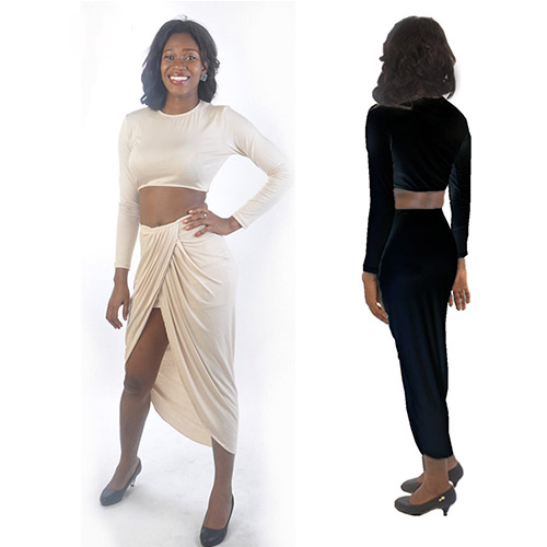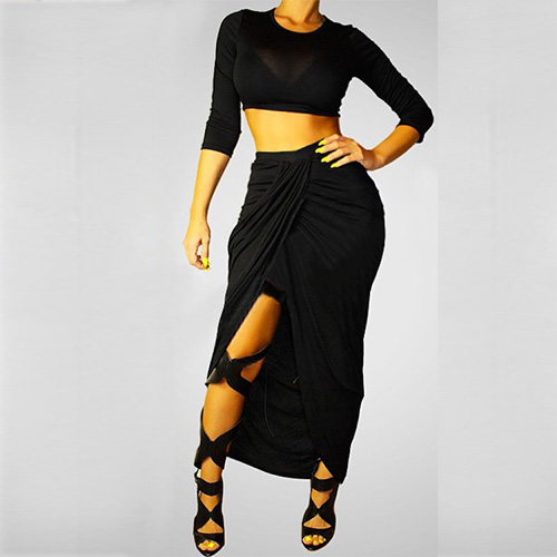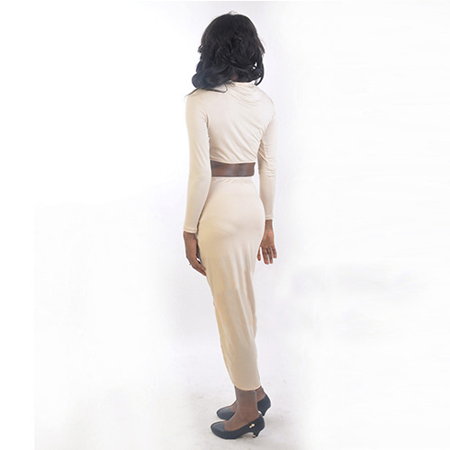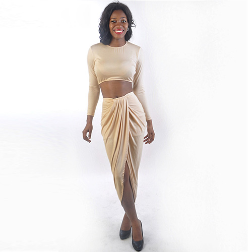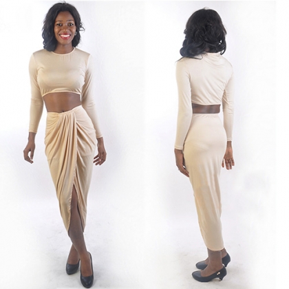 If you are bold enough,you can express your sexy flavor and seductive curve with this sexy bandage dress. Two-piece style,tops with round neck,long sleeve and dew navel design,and skirt with irregular design. Pair with your sexy high-heeled shoes,you are charming enough.