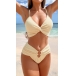 Sexy Solid Color Two-piece Bikini Set Consist of Ruched Bikini Top and O-ring Ruched Bikini Bottoms