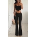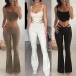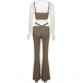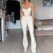 Sexy Solid Color Two-piece Set consist of Buttoned Crop Top and Cutout Wide-leg Pants