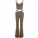Looking for a sexy and fashionable two-piece set? Look no further than this set! Consisting of a buttoned crop top and cutout wide-leg pants, it is perfect for club, party, vacation and daily wear.