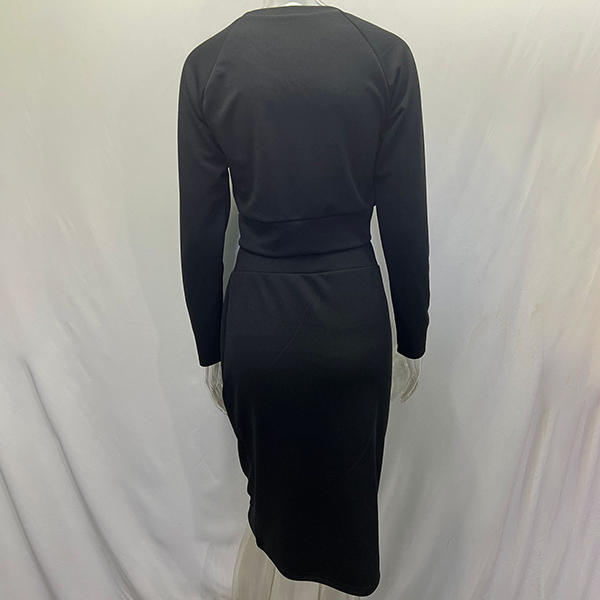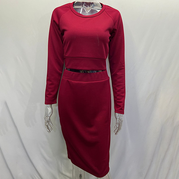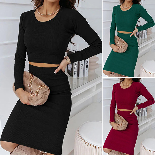 This Sexy Two-piece Set is the perfect addition to your wardrobe. It consists of a long sleeve crop top and a matching skirt that will make you look and feel amazing. The top features round, long sleeves, and a cropped hemline that will show off your curves. The skirt has a high-waisted fit and a knee-length. The solid color ensures that this set will easily pair with any other item.
