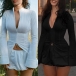 This stylish set offers a coordinated and chic look that is perfect for a night out or special occasion. The V-neck jacket adds a touch of sophistication and allure, while the mini skirt brings a flirty and fun element to the outfit. Pair this set with heels and statement accessories for a head-turning look~