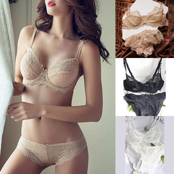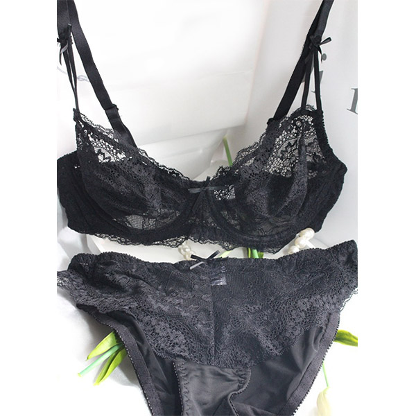 Sexy Solid Color Ultra-thin Breathable Lace Underwear Bra Set