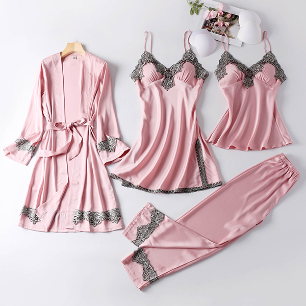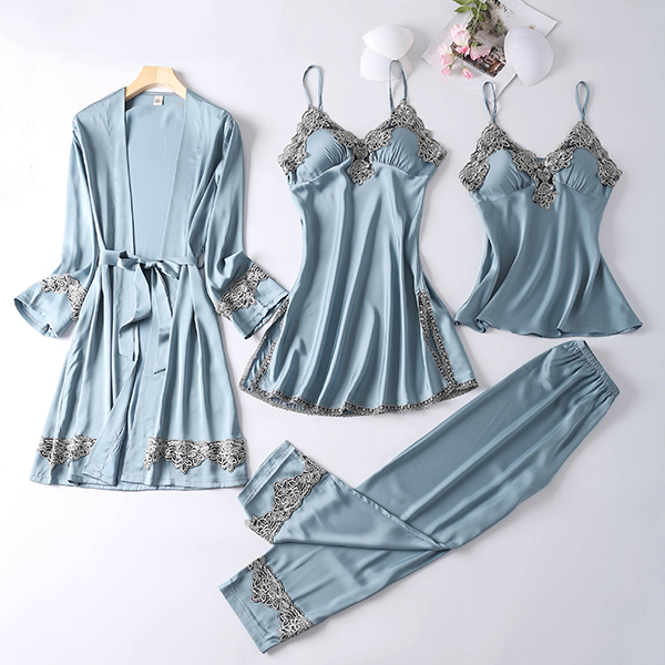 This is a four piece set nightwear, including a sling top, a pair of thin pants, a nightdress and a robe. The fabric is very comfortable and easy to clean. No matter for the summer nights or winter nights,this nightwear set can meet for your different needs. Just enjoy your sleeping time with this nightwear set!