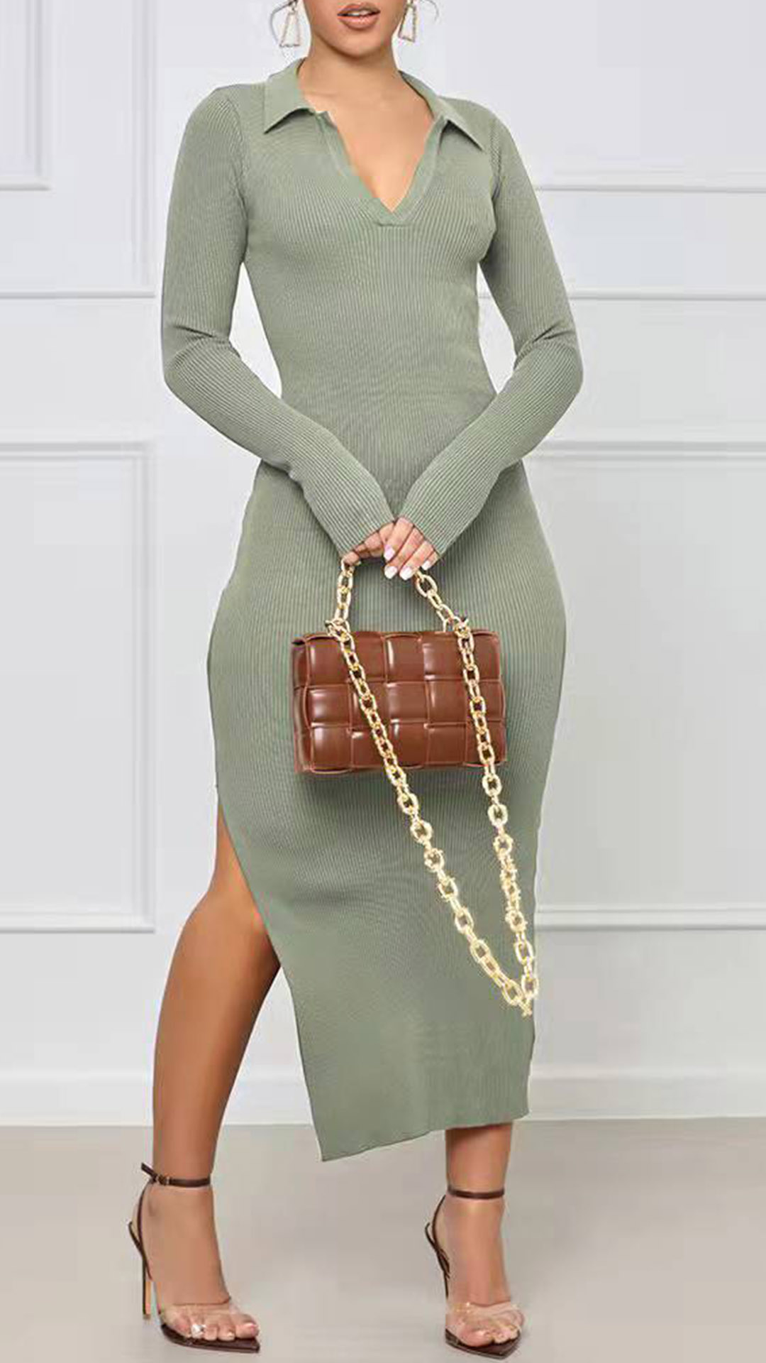 This dress is designed to make a statement and turn heads. The solid color adds a touch of sophistication, while the V-neckline and long sleeves create a flattering and elegant look. The backless design adds a hint of allure and showcases your confidence. The dress features a strategically placed slit, adding a touch of sexiness and allowing for ease of movement. Hope you like it.