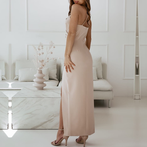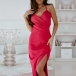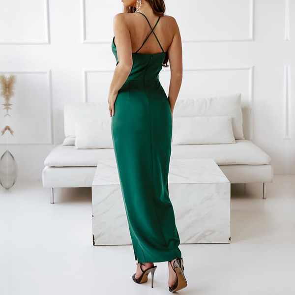 Sexy Solid Color V-neck Backless Slit Slip Dress