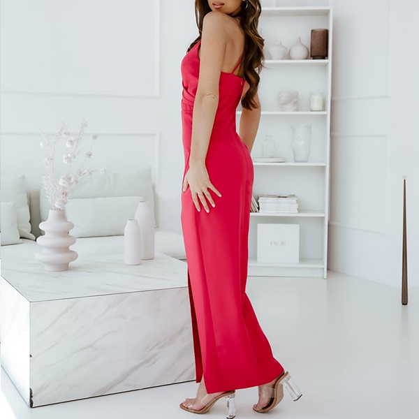 This Sexy Slip Dress is the perfect addition to your wardrobe. Crafted from a lightweight fabric, this dress features a deep v-neckline, a backless design , and a slit up the side for a touch of sultry allure. The solid color lends a timeless look that can be dressed up or down.