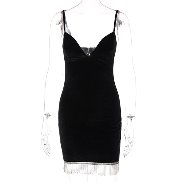 Wanna a sexy and chic dress for dating or party dress? Then try this little stunner. The bling-bling rhinestone tassel hemline is the heat of this dress. Features narrow adjustable shoulder straps, deep V-neck, and bodycon silhouette design, this party dress would make you stand out of the crowd easliy.