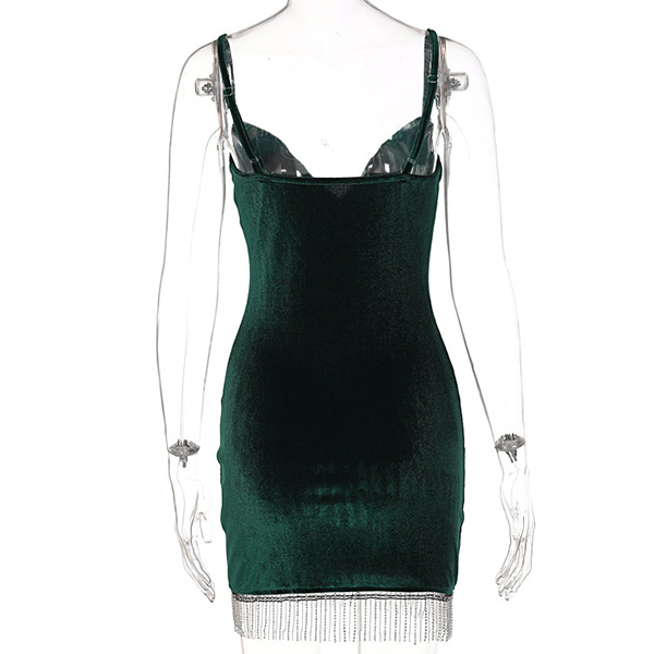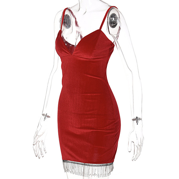 Sexy Solid Color V-neck Bodycon Sling Party Dress with Rhinestone Tassel