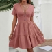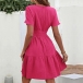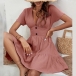 Sexy Solid Color V-neck Buttoned Cinch Waist Short Sleeve Mini Dress
