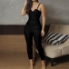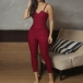 This jumpsuit features a V-neckline is flattering and sexy. The solid color makes this jumpsuit perfect for any occasion, black and red, which one do you like?