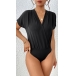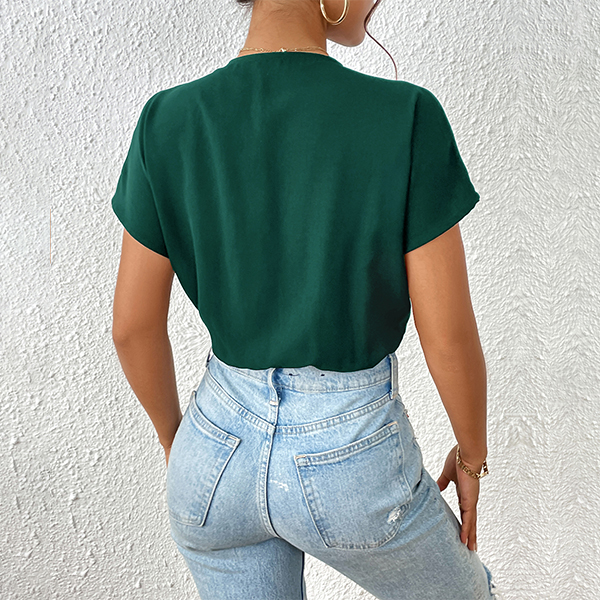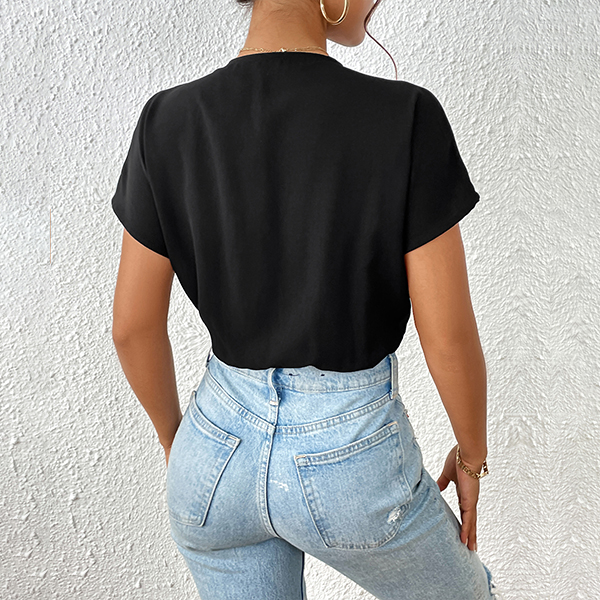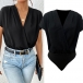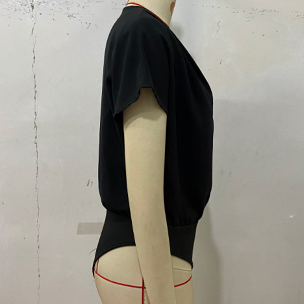 Sexy Solid Color V-neck Cap Sleeve Bodysuit