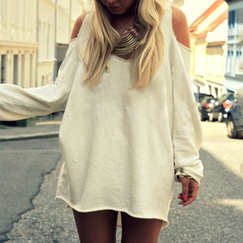 Solid color series, with v-neck, cold shoulder and long sleeve design, concise and sexy.