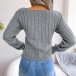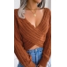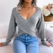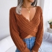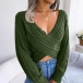 Sexy Solid Color V-neck Cross-criss Long Sleeve Crop Sweater