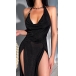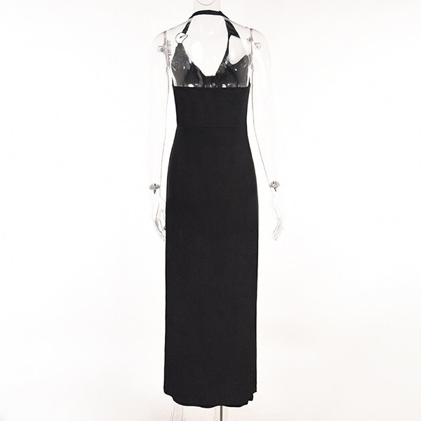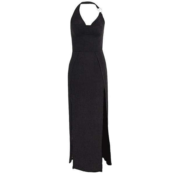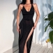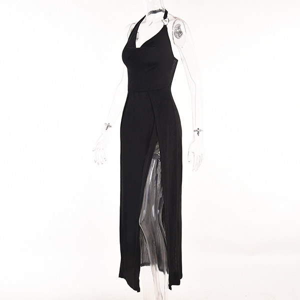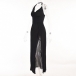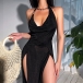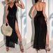 Sexy Solid Color V-neck High Slit Backless Halter Beach Dress