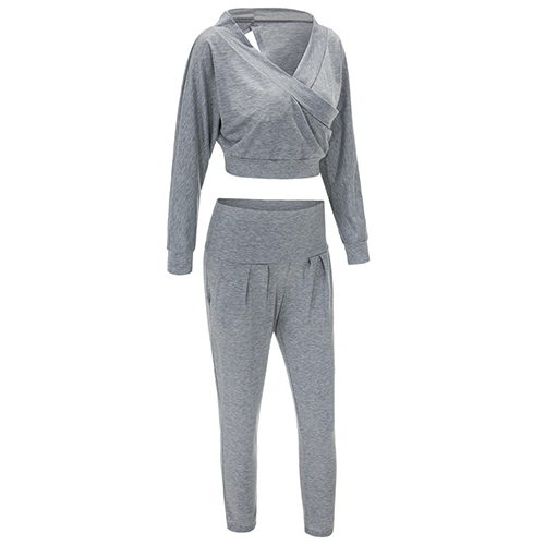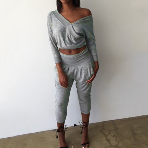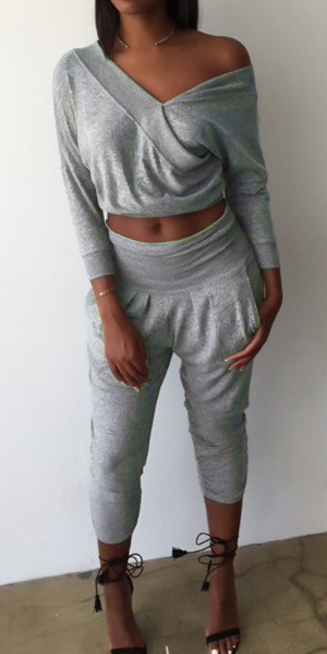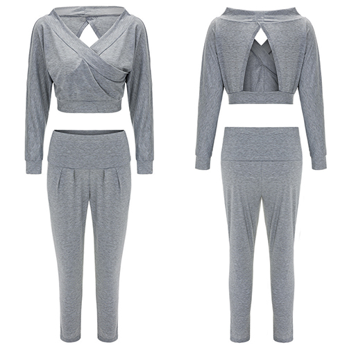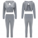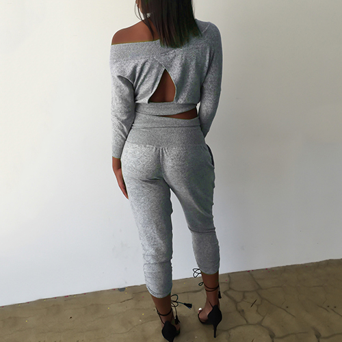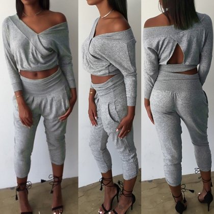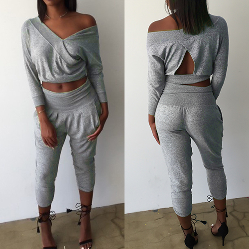 cosy material, this set includes a crop tops with v-neck, long sleeve and back hollow out design, and a capri