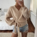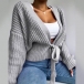 Sexy Solid Color V-neck Lace-up Cardigan Knitted Top