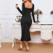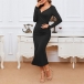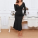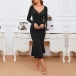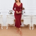 Sexy Solid Color V-neck Long Sleeve Bodycon Dress