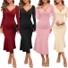 How about this dress? If features a flattering V-neckline, long sleeves, and a bodycon fit that hugs your curves in all the right places. The solid color makes it easy to pair with any accessories! Multi-color avaible