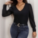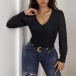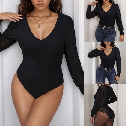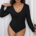 Sexy Solid Color V-neck Long Sleeve Bodysuit