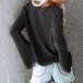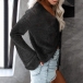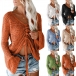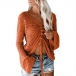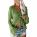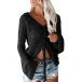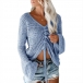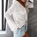 Sexy Solid Color V-neck Long Sleeve Front Drawstring Crochet Shirt