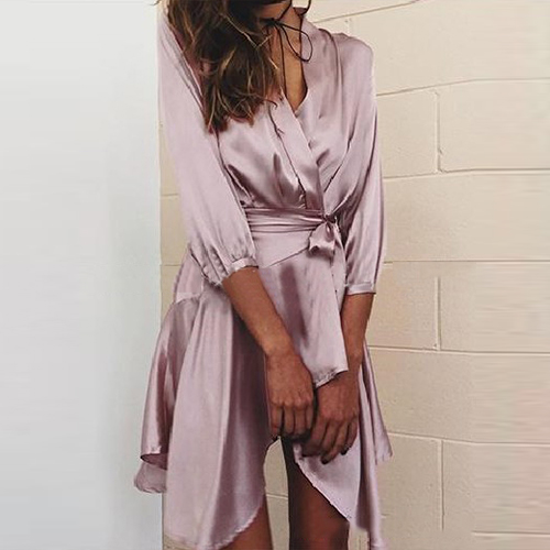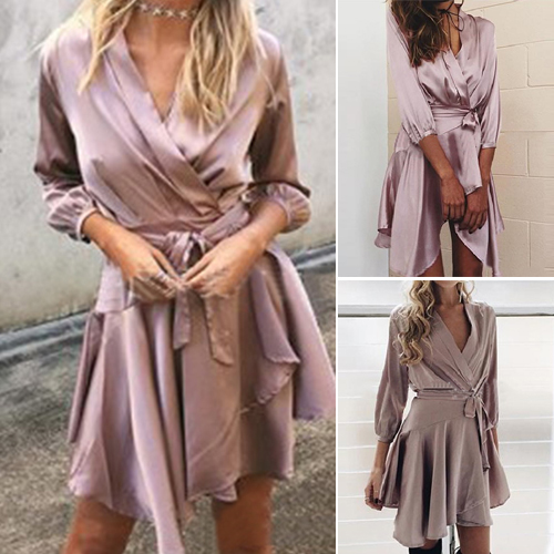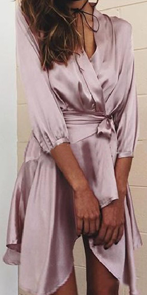 Owning super soft and flowy material, with v-neck, long sleeve and irregular hemline design,