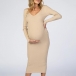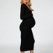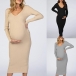 Sexy Solid Color V-neck Long Sleeve Ribbed Maternity Dress