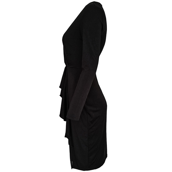 Looking for a little black dress with a sexy twist? Maybe you could try this one! The front ruffled decoration and slit up the side add a touch of femininity, while the bodycon silhouette and long sleeves keep it sexy.