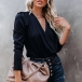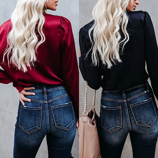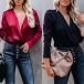 Sexy Solid Color V-neck Long Sleeve Satin Shirt