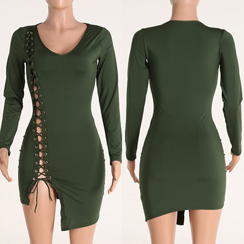 feel unhappy and upset. Filled with sexy and charming flavor, this dress boasts solid color, v-neck and long
