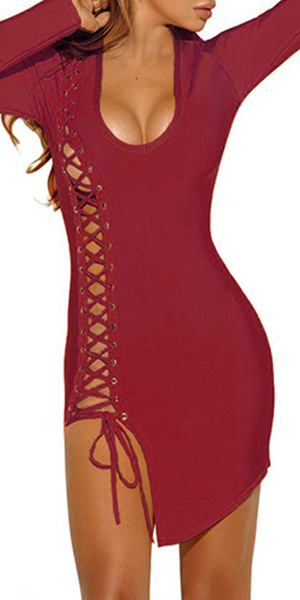 sleeve design; its side lace-up and hollow out style would perfect show your seductive curve and fatal allure.