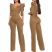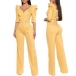 This Jumpsuit is the perfect way to show off your curves and make a statement. The flattering v-neckline and wide-leg silhouette are sure to turn heads, while the puff elbow sleeves add a touch of elegance. I like the O-ring along the waistline, and you?