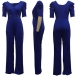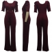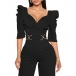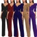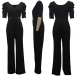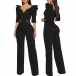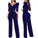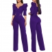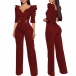 Sexy Solid Color V-neck Puff Elbow Sleeve Wide-leg Jumpsuit