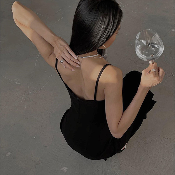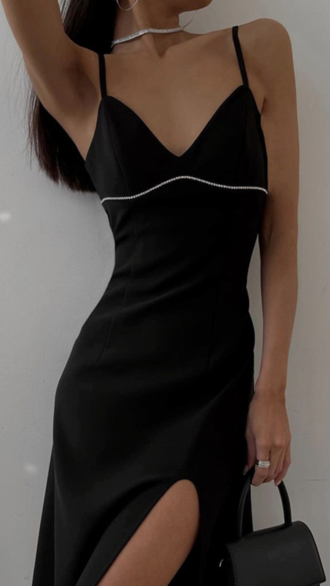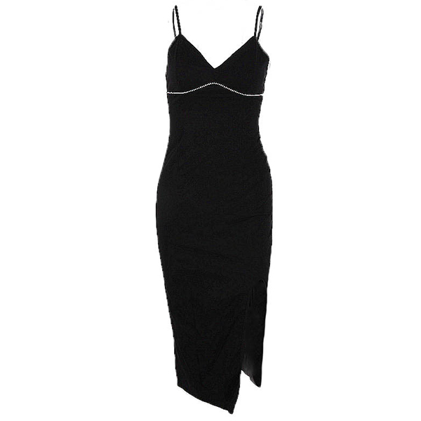 Looking for a sexy little number to show off your curves? Try this one! The figure-hugging silhouette will show off your best assets, while the slit up the side will give a tantalizing glimpse of leg. The V-neck is both flattering and sexy, and the rhinestones add a touch of glamour. Whether you're hitting the town or just heating up the bedroom, this slip dress is sure to please.