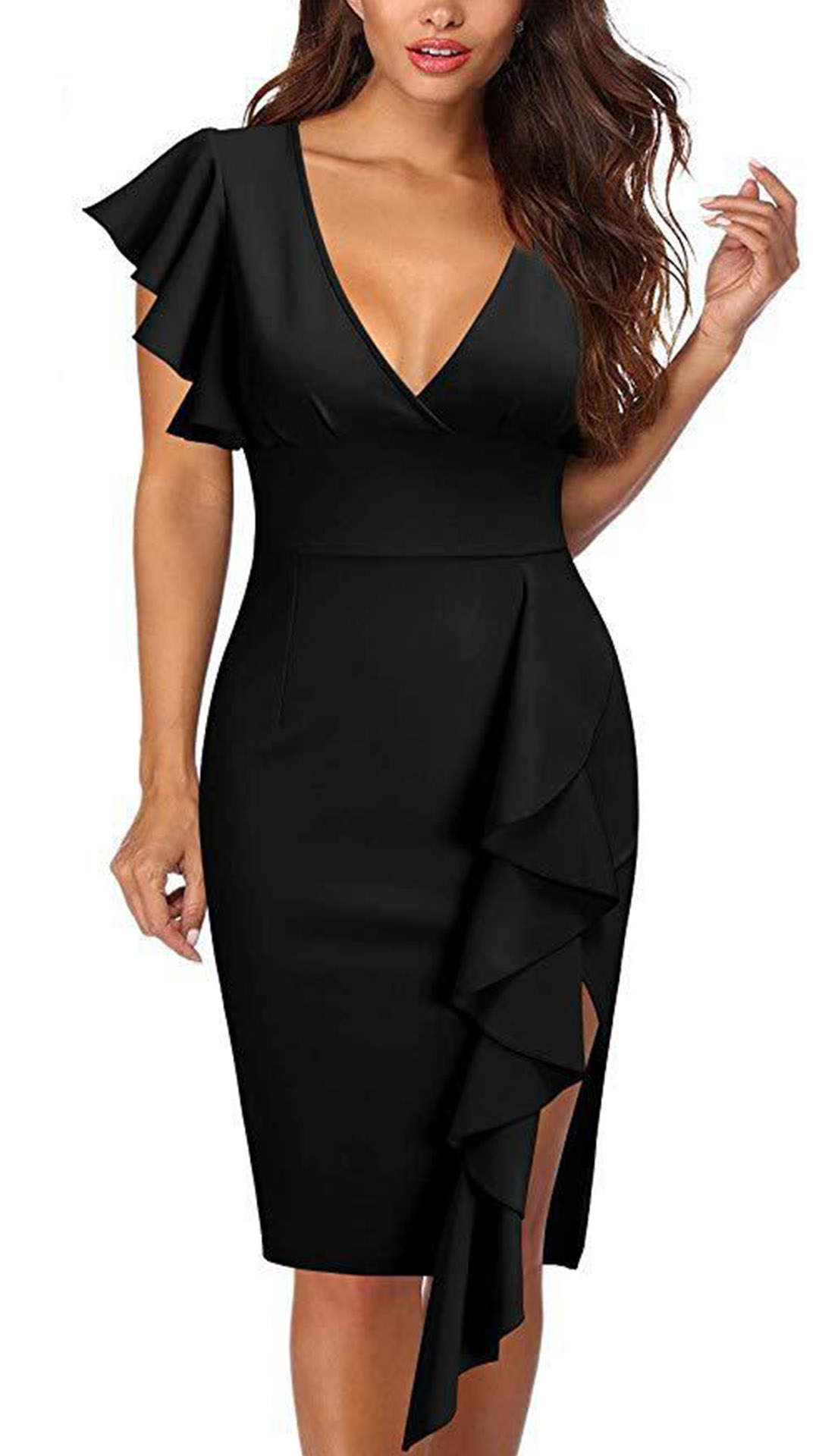 Looking for a sexy and stylish dress that will hug your curves in all the right places? Look no further than this Ruffle Bodycon Dress! The ruffle detailing and slit up the side add a touch of femininity and sexiness, while the bodycon fit ensures you'll look absolutely gorgeous. Wanna have a try?