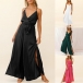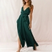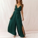 Sexy Solid Color V-neck Self-tie Slit Wrap Cami Jumpsuit
