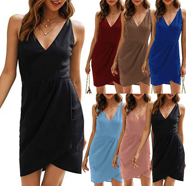 Sexy Solid Color V-neck Sleeveless Irregular Hemline Dress