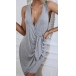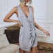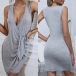 Sexy Solid Color V-neck Sleeveless Irregular Hemline Dress