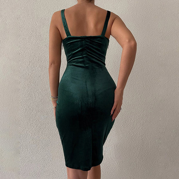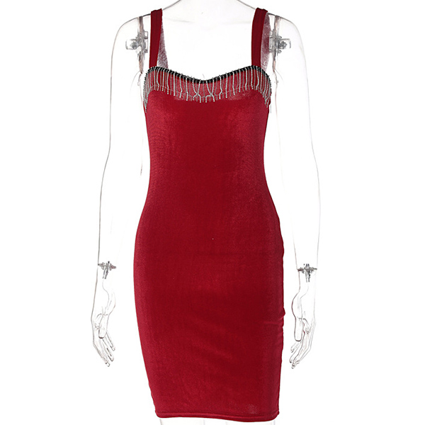Sexy Solid Color V-neck with Rhinestone Tassel Party Bodycon Dress